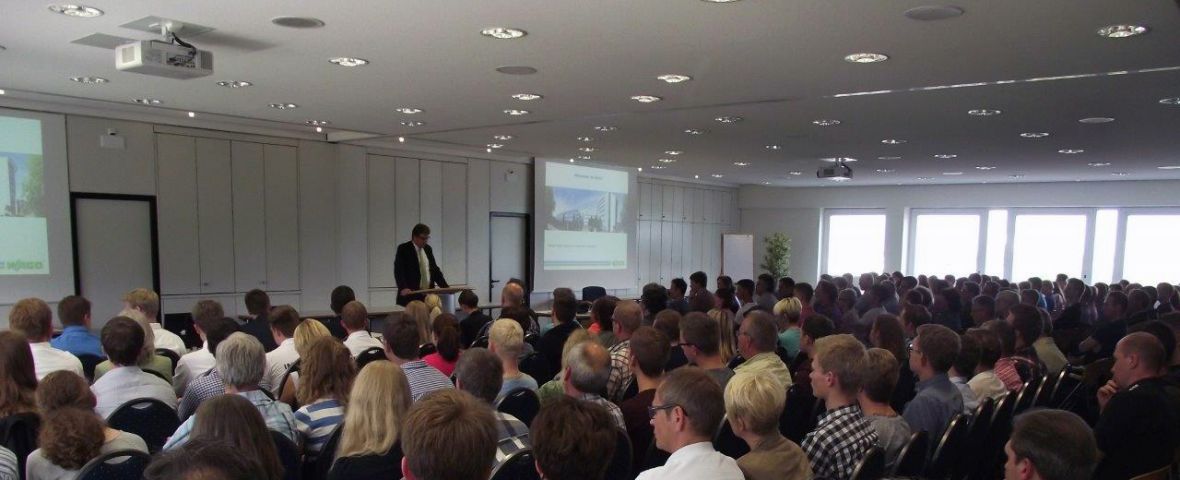 Das Besondere der Veranstaltung ist, dass sie sich nicht nur an die künftigen WAGO-Azubis richtet – 71 Jugendliche werden am 15. August ihre Ausbildung in Minden beginnen – sondern gezielt die Familien einbezieht. „Bei den Angehörigen ist das Interesse groß, das Unternehmen kennenzulernen und offene Fragen zu klären“, stellt Thomas Heimann fest. Den „Neuzugängen“ nimmt die Veranstaltung außerdem etwas von der Aufregung vor dem Start ins Berufsleben. Zum Programm des WAGO-Ausbildungsteams gehörte eine ausführliche Unternehmenspräsentation, der sich Informationen über die Betriebliche Altersvorsorge anschlossen. Der Betriebsarzt Dirk Krämer gab einen Überblick über das Thema „Arbeitsmedizin“. Zum Abschluss gehörte die Bühne den WAGO-Azubis selbst, die einen Vortrag über „Gesunde Ernährung“ hielten und so ein eigenes Projekt vorstellten. „Die Veranstaltung war wirklich toll. Jetzt habe ich eine viel bessere Vorstellung, was mich hier bei WAGO erwartet und konnte schon erste Kontakte zu anderen Azubis knüpfen“, freut sich Rica Nahrwold, angehende Industriekauffrau, auf ihren Ausbildungsbeginn.