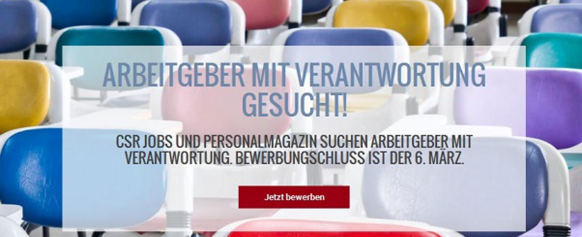 Die Frist für die Einreichung der Bewerbungsunterlagen für den diesjährigen CSR Jobs Award ist abgelaufen. Wir wollen es wissen: Wer engagiert sich in herausragender Form für seine Mitarbeiter? In Kooperation mit dem Personalmagazin prämieren wir besonders engagierte Arbeitgeber in Deutschland. Die zehn besten „Arbeitgeber mit Verantwortung“ werden mit dem CSR Jobs Award 2015 ausgezeichnet und erhalten ein ausführliches Unternehmensprofil in Wort und Bild.Zahlreiche Unternehmen aus verschiedensten Branchen haben sich beworben. Allein die Einsendung der vielen spannenden Beispiele aus den Bereichen Vielfalt, Familienkultur, soziales und gesellschaftliches Engagement zeigt: Viele Arbeitgeber entwickeln spannende Programme, um Mitarbeiter an das Unternehmen zu binden. Wir freuen uns über die vielen Bewerbungen und werden weiterhin ausführlich berichten.